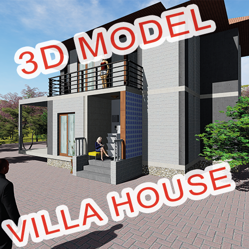 VILLA HOUSE 3D MODEL DESIGNED AS TWO FLOORS WITH GARDEN, MODELED FROM THE VILLA HOUSE DRAWING PROGRAM. Skp, dwg files are INCLUDED.